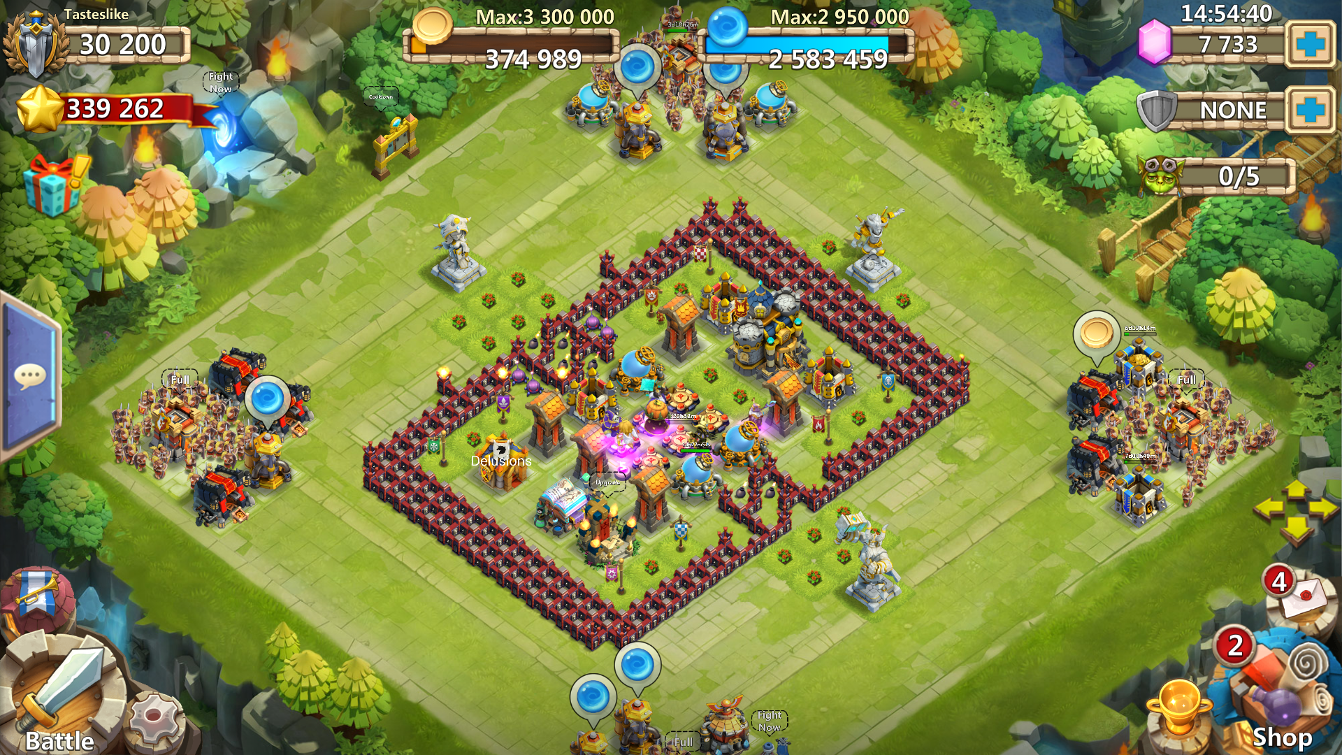 typicial 6 hero town, with 4 level 8 arrow towers and level 16 altar and