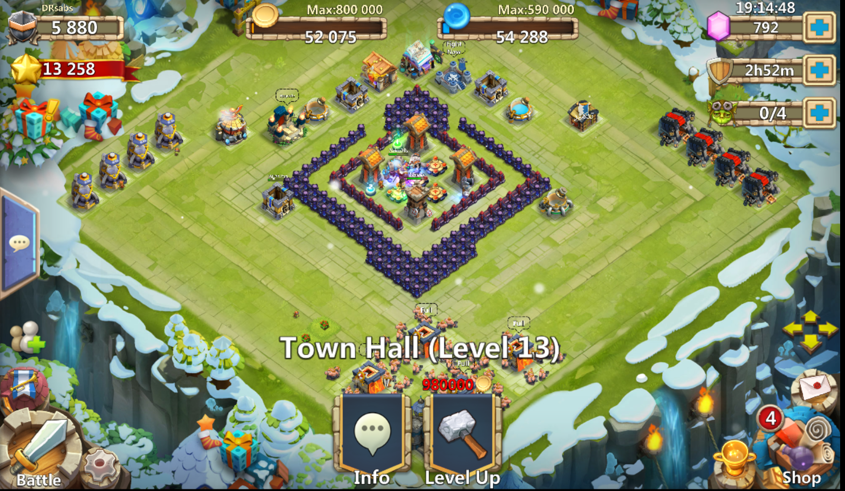 Description: It's a DeathClover modified base,where the vaults tank for you,and you have no towers due to the low might. It's very good if you want an account with very low might.